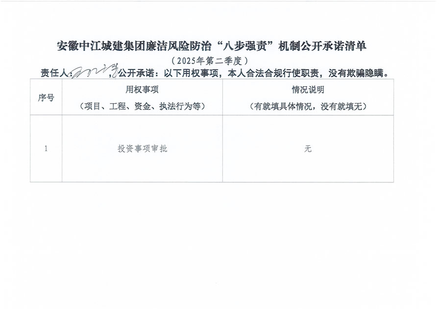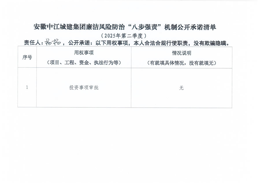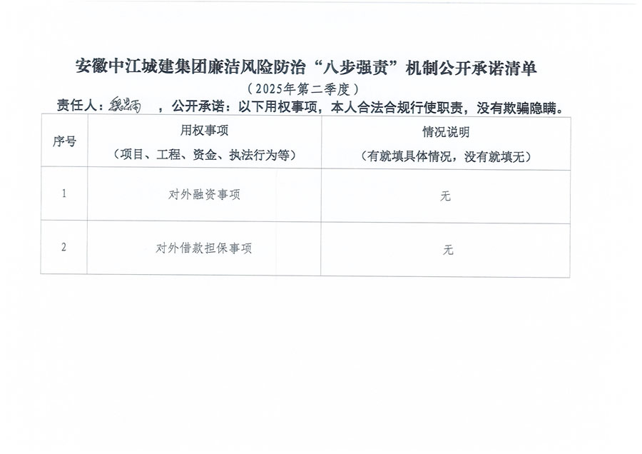 安徽中江城建集团廉洁风险防治“八步强责”机制公开承诺清单